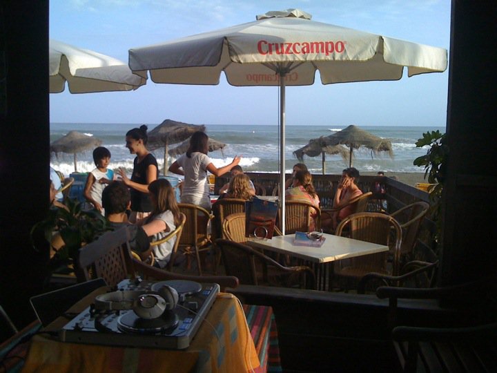 The place attracts everyone, from sun worshippers to families out for the early evening paseo, to hippies, to youngsters starting their evenings out. It is popular with many nationalities – Spanish, Dutch (it’s Dutch owned), English, Germans and whoever else happens wander past as the evening progresses. It’s a great place to play a DJ set as the sun sinks behind the Andalusian mountains, and it’s one of the venues I’ve been using for my Sunset Rocks sundowner parties this year.