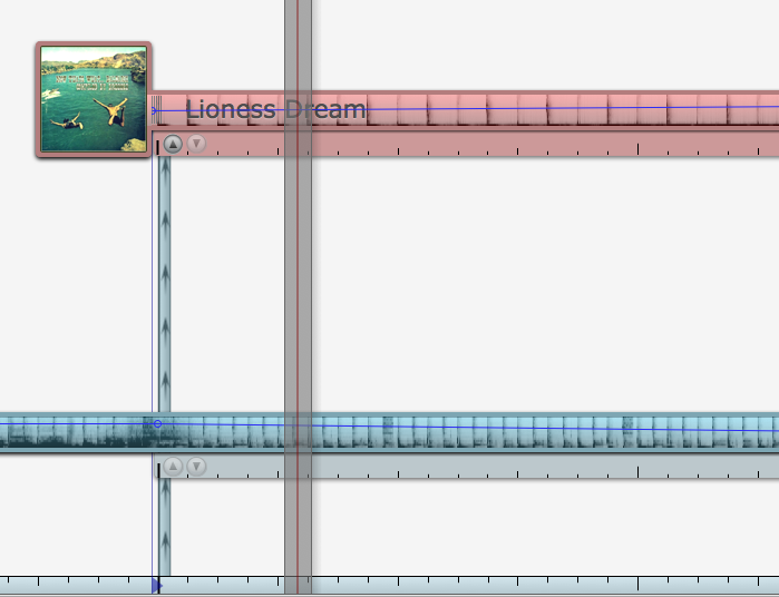 By zooming right in, dragging the playhead to the right place, and moving the new track’s waveform left or right, you can get the track to come in to the mix at exactly the right point. You can also specify at which point you’d like the new track to actually start (to knock out silence at the beginning, or to get rid of a beatless intro you don’t like – whatever) by dragging a little bar.