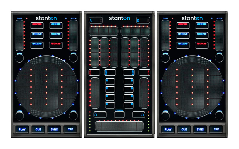This is where the multiple cue triggers can be (up to 9 per unit). It is also where you’ll scrub through your library, manipulate your FX – in short, it’s truly a multi-use surface. It even shows you visually when a track is slipping out of time, letting you correct it with the sweep of a finger. In a generation getting used to iPad, Android and MacBook touch gestures, Stanton are on the game here.