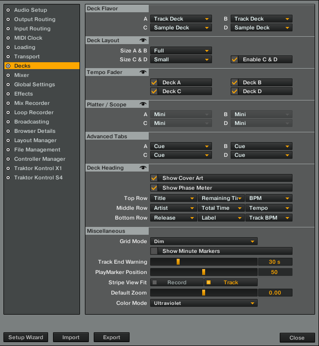 With its mammoth configuration section, cockpit-style advanced display modes, and myriad buttons, dials and faders, Traktor Pro 2 has a control for just about everything a DJ could possibly want or need to do.