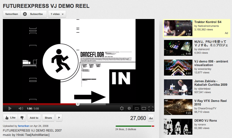 It’s definitely worth making a demo, especially if you’re using visuals alongside your music rather than just playing music videos, or if you think the VJ-only route might get you your break. Frankly I don’t think this demo need be a representation of what you’d do in a two-hour set. Just as we recommend audio DJs make mashups not mixtapes to get noticed, so I think a five-minute demo of your skills on YouTube, honed to perfection, will sell you far better than some more genuine rambling representation of your work. Consider it “edited highlights”.