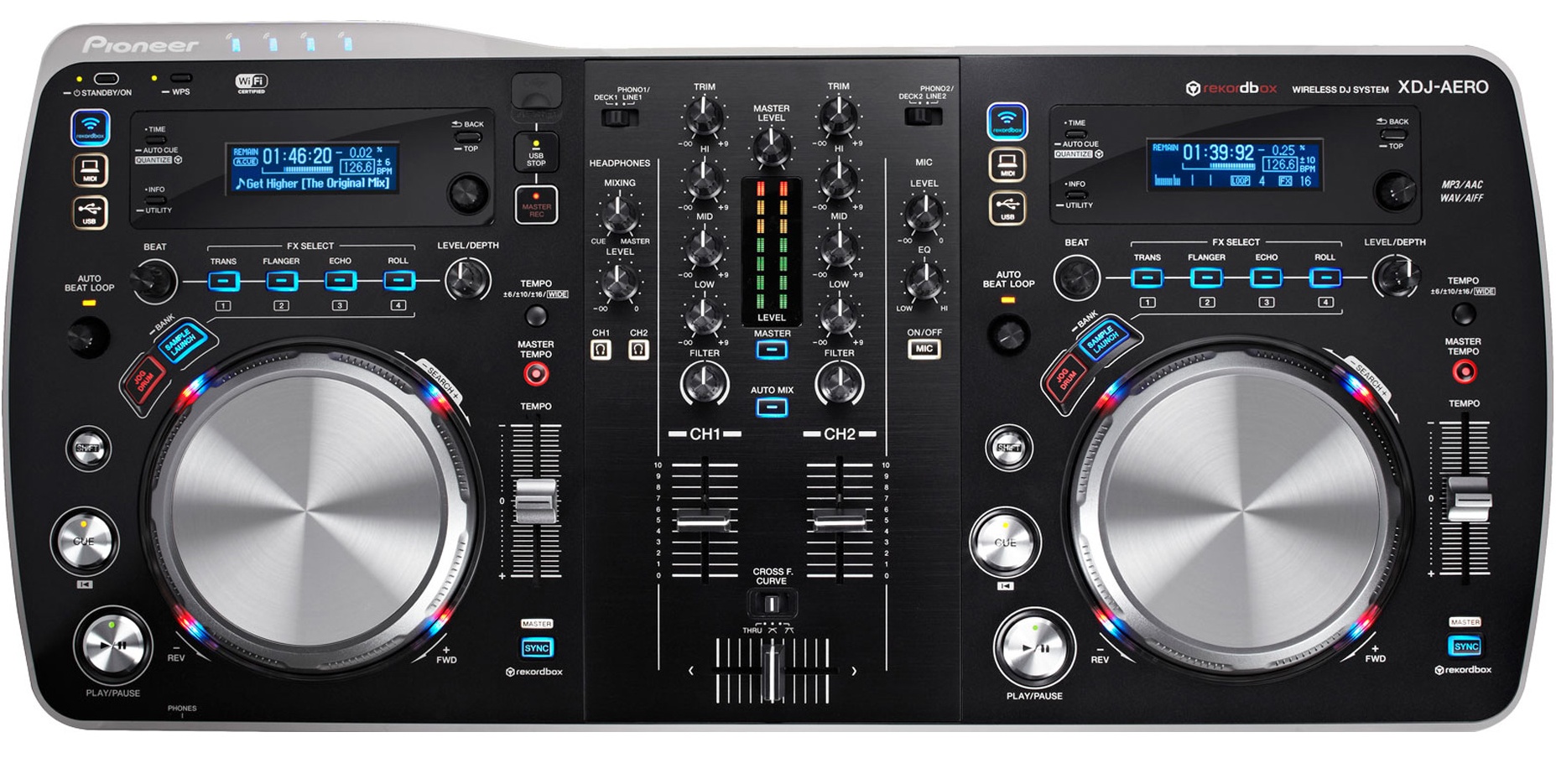 The XDJ-Aero can only use tracks that have been processed with Pioneer’s rekordbox software (regardless of the platform that this was done on). This means that all the leg work of calculating the BPM and beatgrid for a track is done in advance and not on the XDJ-Aero, resulting in quick loading time. Adding tracks from your library into rekordbox is a quick and simple process, and you can set a cue point and correct the beatgrid if you want to later on.