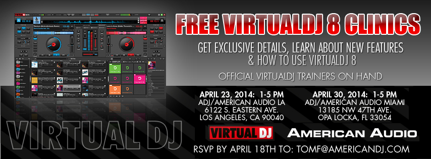 This week we’ve received word of two free Virtual DJ 8 Clinics being held by American DJ in Los Angeles and Miami this April (see flyer below), indicating that Atomix – the makers of Virtual DJ – has a finished product on its hands. What’s more, we’ve got an exclusive screenshot (above) showing you what the finished software looks like.
