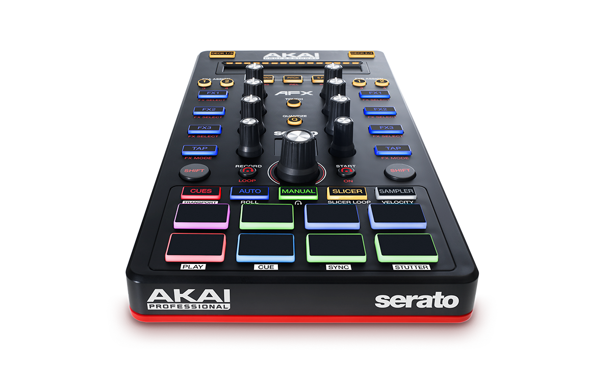 All of Serato DJ’s pad modes are available here including slicer, cues, loops, sampler and so on, controlled by velocity-sensitive, RGB pads. The AFX’s knobs are touch-sensitive, just like the Numark NS7II’s, and support for Serato Flip is built-in, making this the first controller to officially have dedicated controls for this just-announced Serato feature. The box will contain voucher codes for the Serato Flip expansion pack, and for the Back Pack FX expansion pack too.