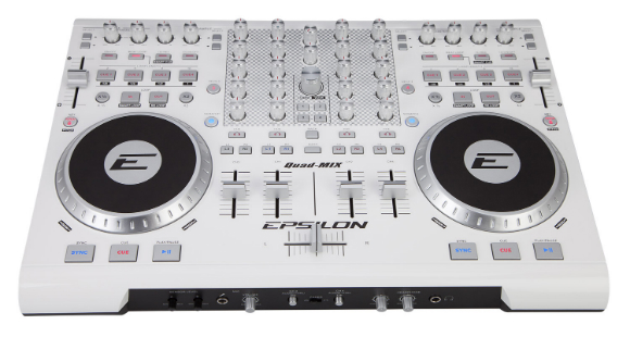 Newcomer Epsilon-Pro has gone all Pioneer on us and announced a white version of its Quad-Mix four-channel DJ controller. It comes bundled with a copy of Virtual DJ LE, and has all the controls expected of four-channel controllers these days, save for a bank of drumpads. A highlight on this device, though, is its comprehensive input/output section, which includes XLR and RCA master outputs, a booth output, and phono/line inputs for channels three and four, allowing you to hook up turntables and CDJs respectively. The jogwheels also have sensitivity level controls so you can control how the jogs respond to your touch. Lastly, the Epsilon-Pro Quad-Mix comes with a microphone input.