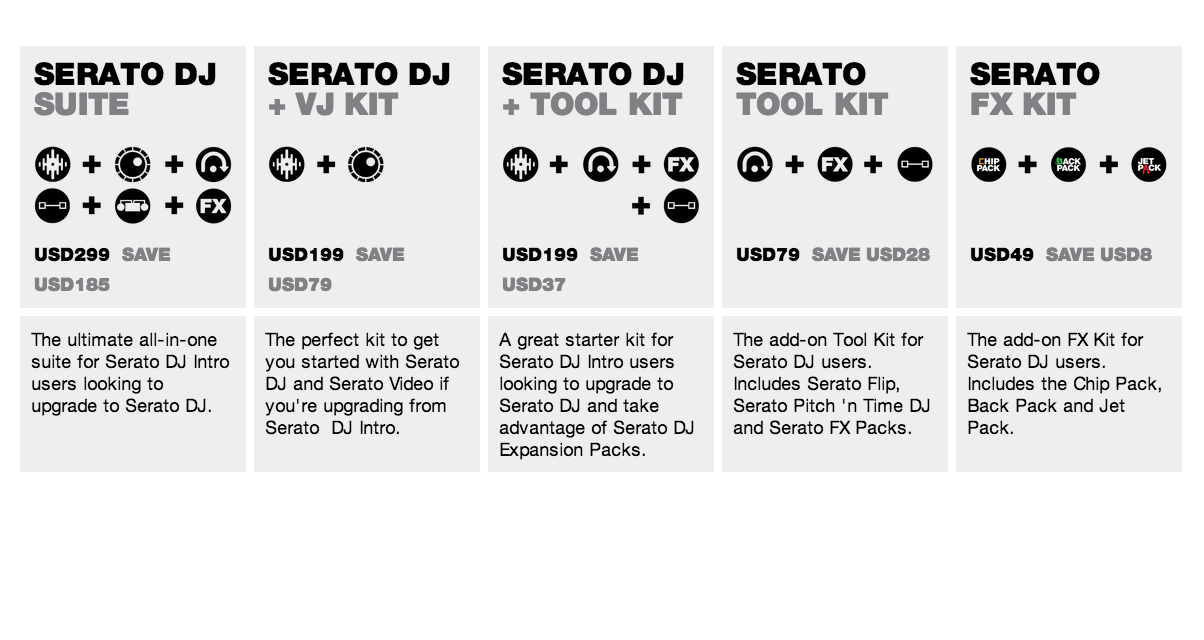• Serato DJ Kits are available now at the Serato Online Store, ranging from US$49 to US$299.
