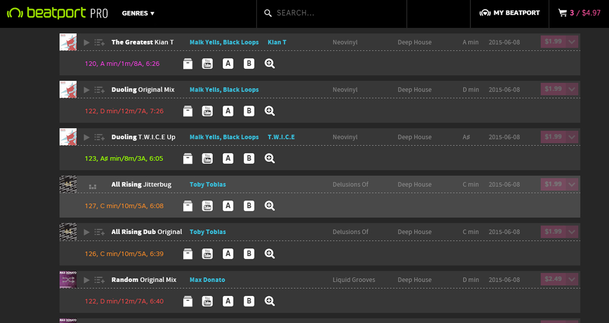 Beat Navigator Pro is a cheeky add-on extension for Google Chrome that can save you a lot of money on Beatport Pro music purchases. Aside from pulling data like tempo, song key (in standard, Traktor, and Camelot notation), and track length,and boasting a built-in two-channel mixer (for figuring out if songs mix well together before buying them), this extension takes advantage of the fact that many songs are in the Beatport catalogue more than once.
