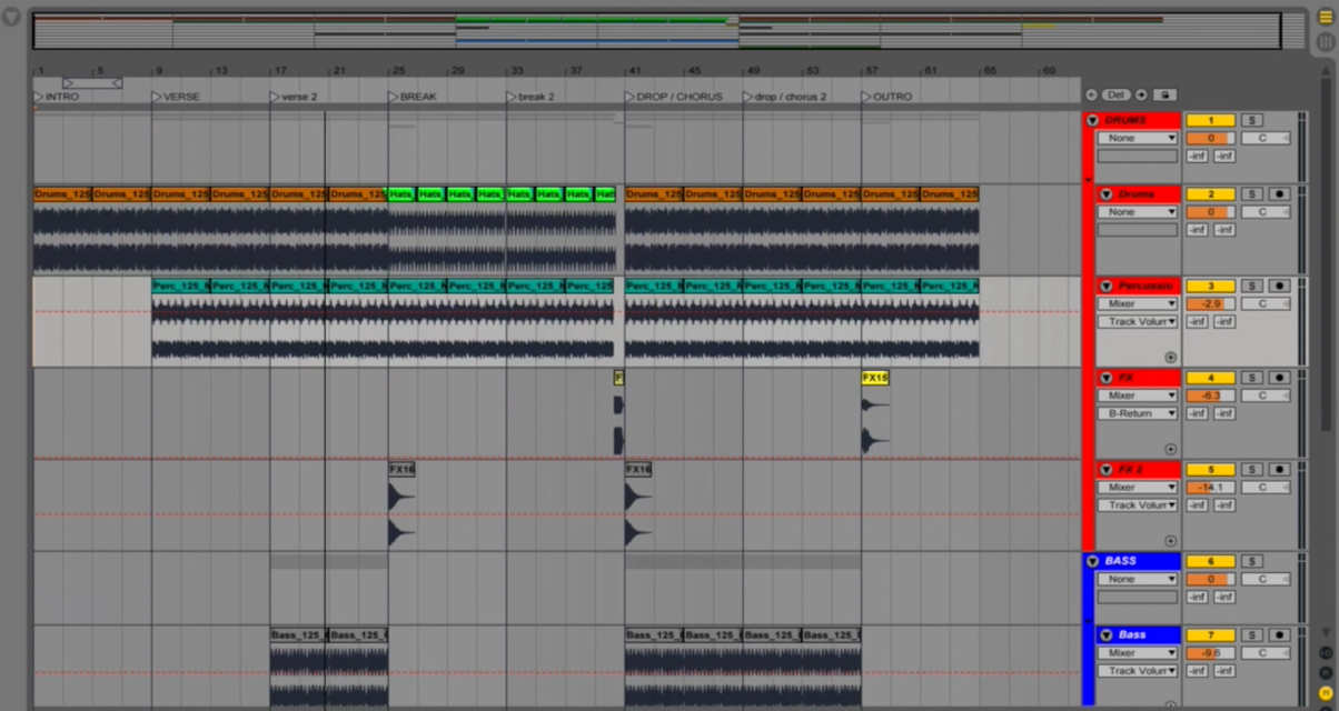 A Stem Loop Map shows you where parts of a song (what I like to call “chunks”) start and end, making them quick and easy to fill in with loops and samples. It does this by having markers for chunks like the Intro, Verse, Break, and Drop, and these markers are called “Locators” in Ableton Live.