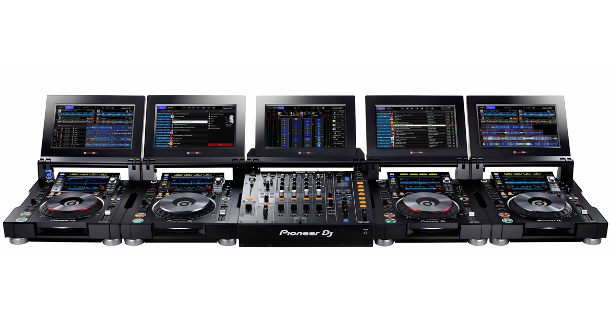 Obviously it’s meant for those who just want to bring a USB stick and headphones to the booth: there’s a screen on the DJM-TOUR1 and two screens per CDJ-TOUR1 (the screen on the CDJ itself, and the 13″ foldout). That’s a ton of display information right in front of you at all times, but one of the popular reasons why DJs like using CDJs is because you’re not staring at a big screen while you’re DJing: surely having five of them will null that positive? Perhaps you can just fold them out of the way when you don’t want to see them.