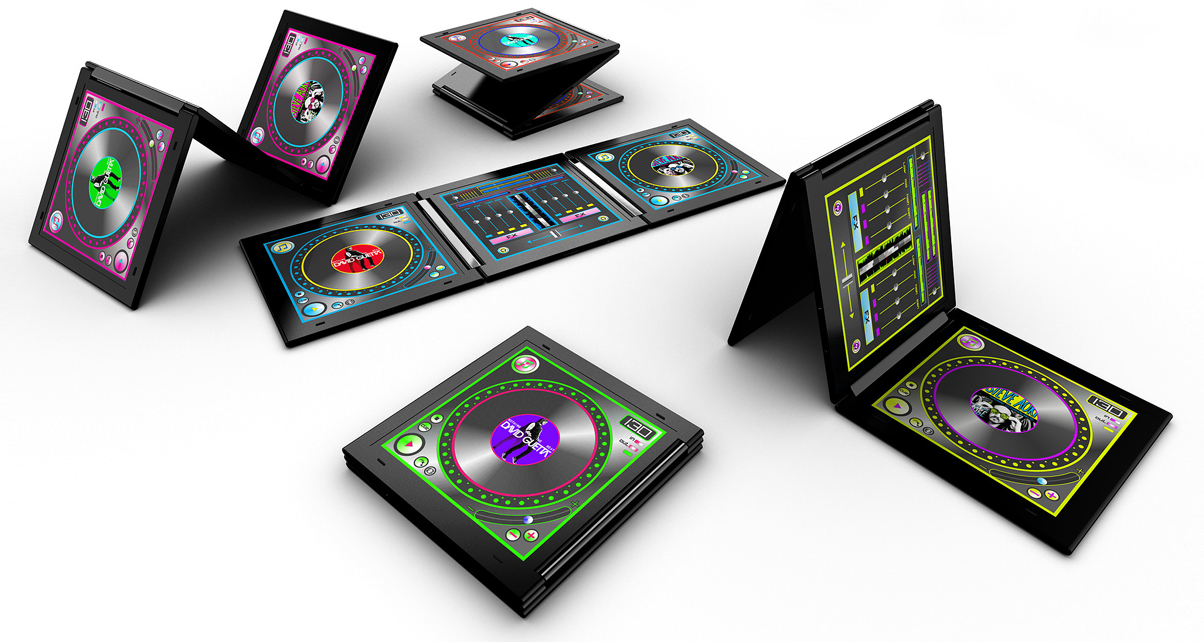 It’s a clever, origami-inspired idea for tablet DJing, but with specifications thin on the ground, it’s hard to even come up with assumptions. Will it come with its own OS, or will the DJ software be built on something like Android? What’s the size of the internal hard drive, and will it come with an expandable memory option? What kind of audio interface will it have (if it will have one), and will it be built into the unit or as an external accessory? Most importantly, how much will it cost? We’ll just have to wait and see…