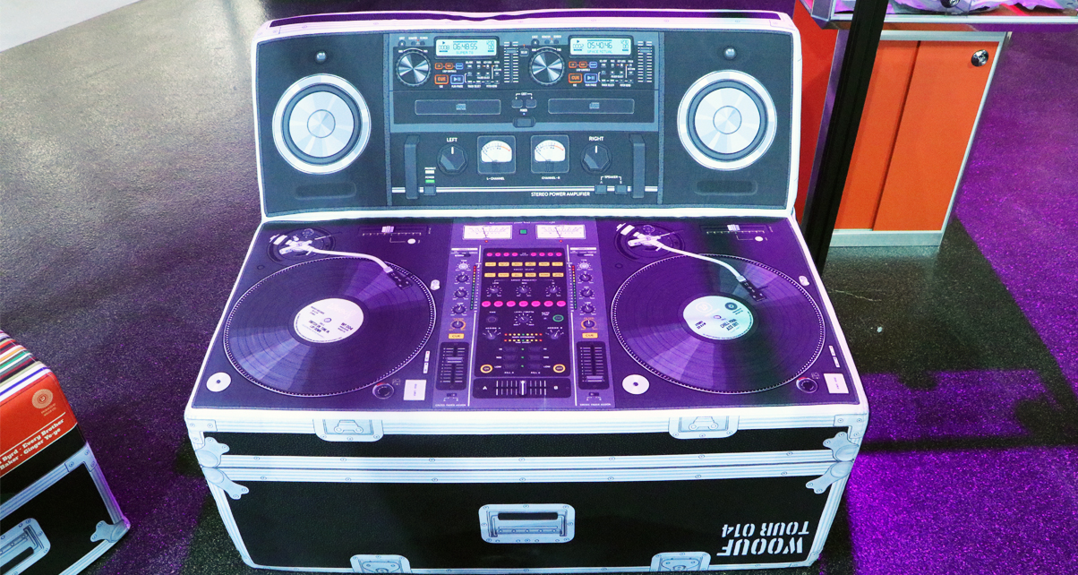 These DJ-themed couches were on display at the Dynamic Distribution stand. I want one for my home studio (Check out the dual CD players at the top. That’s what spinning CDs was like before the advent of the modern CDJ.)