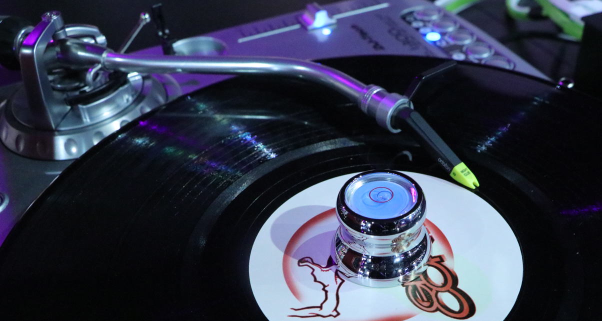 If you like DJing with vinyl 45s, we spotted this cool little adapter – what you do is you place it on top of your turntable’s spindle so you can play a 45 record (they have larger centre holes than normal records, for those of you who aren’t familiar). What’s neat about it is that it comes with a gauge at the top of the adapter which tells you if your player’s on a level surface or not.