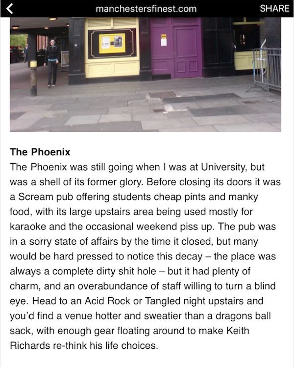 The venue we’d moved to, called The Phoenix, was a small, dingy, dark sweatbox, but it had a great sound system and a sympathetic manager who believed in us and bent over backwards to help us make it work. I walked in and remember clearly saying to my co-promoter and DJ, Terry, “we’ve found our spiritual home”.