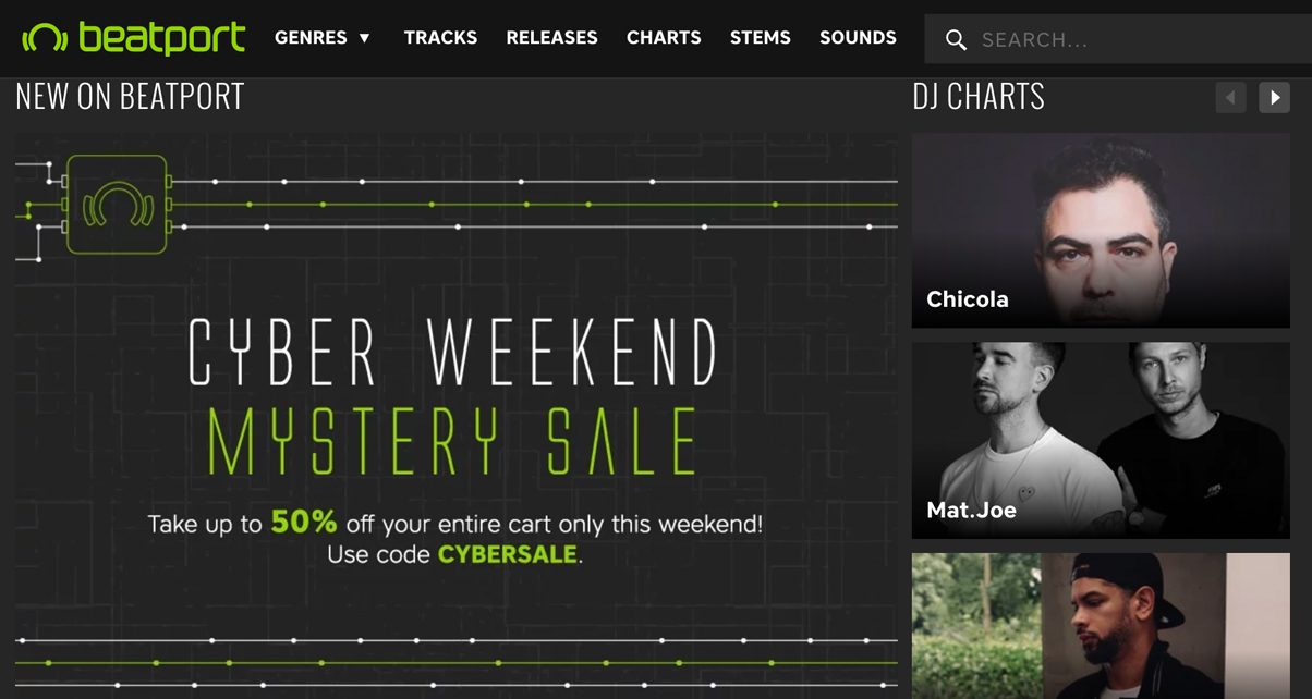 Beatport’s annual Black Friday Sale comes in the form of a time-sensitive voucher across the entire store, and right now you can take up to 50% off of your entire cart. Top up on new tracks for all those upcoming holiday parties.