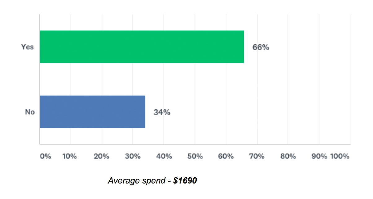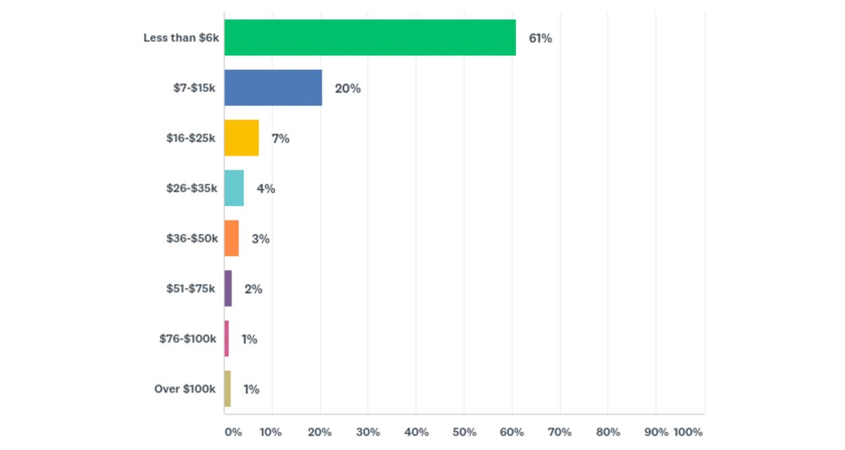 US$6000 is the ceiling for 61% of our mobile DJs, with US$7000-15,000 coming in at a close second. That’s a significant chunk of change for spinning tunes (a year of mobile DJing can get you that Denon DJ Prime set, for instance).