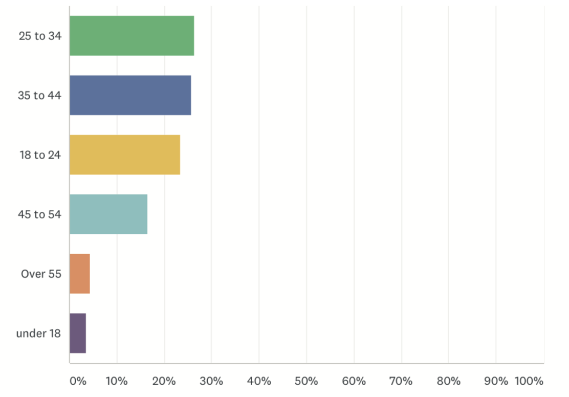 A huge chunk of our readership falls in the 25 to 44 age bracket, followed by the “young ‘uns” in the 18 to 24 age range. We’ve also got lots of folk aged 45 and above – proof that playing music keeps us (feeling) young!