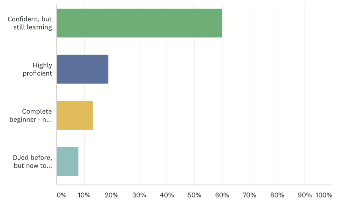 60% of you are confident in your abilities but are still open-minded and willing to learn new things. That’s a pretty good mindset not just for DJing, but for life in general!