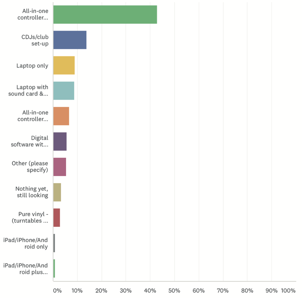 Over 80% of you play out regularly or once in a while (awesome!) while a small portion are still bedroom DJs. Spinning at home is cool, but make it a point to get out of your bedroom and start playing in front of a crowd. It’s one of the best feelings ever, guaranteed.