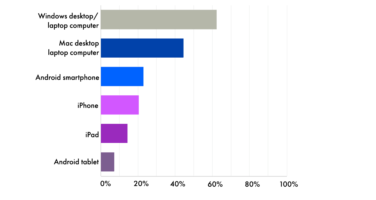 There are more Windows users in our audience compared to Mac users, with over 60% saying they use PC laptops / desktops. There are also more Android smartphone users compared to iPhone owners – both results are consistent with past surveys, proving that while there are many iOS-exclusive apps, it makes sense for developers to start porting them over to Android too.
