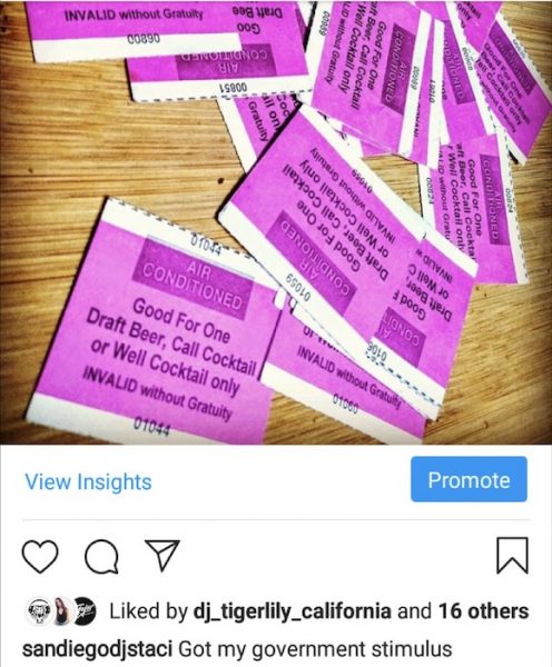 The other day I posted a pile of drink tickets I have accrued from one of my local residencies and captioned it, “Got my government stimulus benefits for out-of-work DJs.”